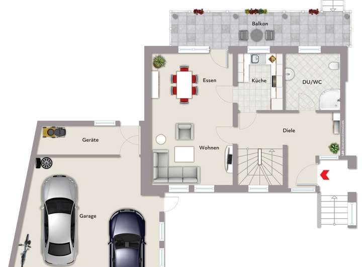 * 2 PKW-Stellplätze für EG und OG d. 2-FH