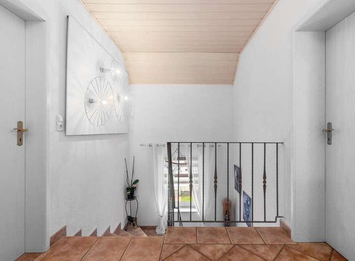 Das vermietete Einfamilienhaus präsentiert sich in einem sehr gepflegten Zustand und besticht durch einen sehr durchdachten Grundriss. Im Erdgeschoss empfängt Sie ein heller Wohn- und Essbereich, der durch einen Balkon und eine angrenzende Küche ergänzt wird. Ein modernes Tageslichtduschbad vervollständigt das Raumangebot auf dieser Wohnebene. Das Obergeschoss beherbergt drei Zimmer sowie ein Tageslichtwannenbad. Im Untergeschoss befindet sich ein weiteres Zimmer, das sich hervorragend als Gästezimmer oder zusätzliches Schlafzimmer nutzen lässt; zusätzlich sind dort ein weiteres Duschbad, eine Waschküche und ein Abstellraum vorhanden. Eine Fußbodenheizung versorgt das Erdgeschoss, dass restliche Haus präsentiert sich mit den klassischen Heizkörpern.