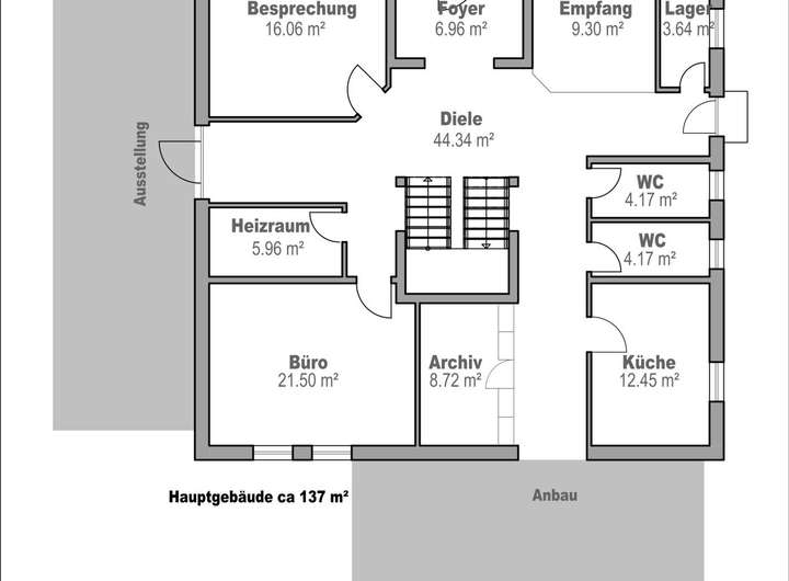 * Ausstellung: EG ca. 111 m² (Raumhöhe ca. 3,50 m)