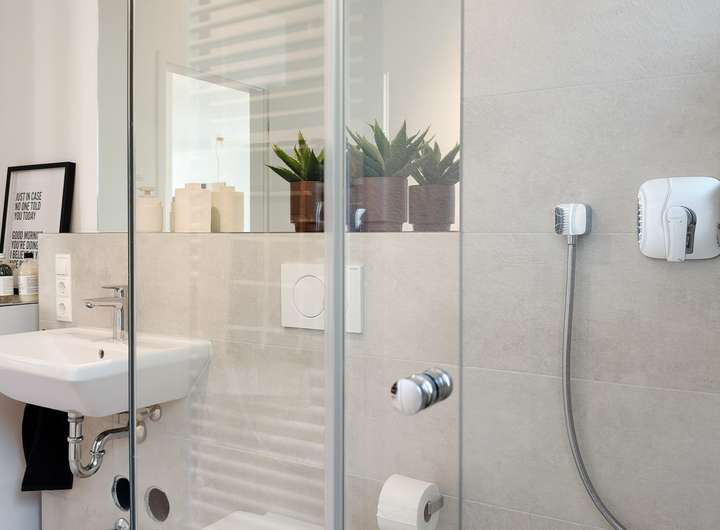 * Komplett ausgestattete Bäder u.a. mit Duschabtrennung aus