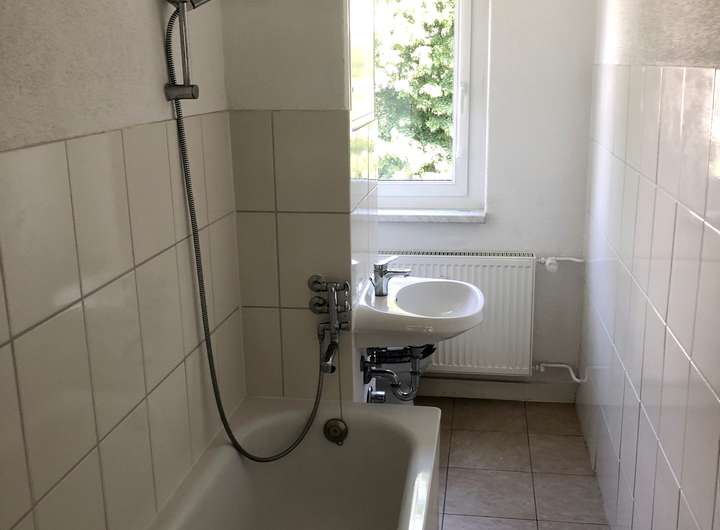 Das geflieste Tageslichtbad ist mit einer Badewanne versehen und rundet das Raumangebot ab. In allen Wohnräumen wurde Laminatboden verlegt. Ein Kellerraum steht als zusätzlicher Stauraum zur Verfügung, ein Stellplatz kann bei Bedarf separat angemietet werden.