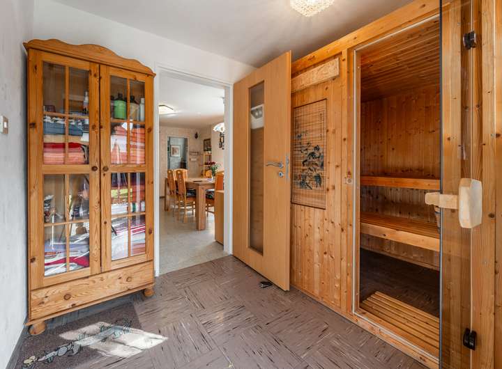 Auch die Ausstattung lässt kaum Wünsche offen: Eine funktionale Einbauküche lädt zum gemeinsamen Kochen und Genießen ein, während der gemütliche Kamin an kühleren Tagen eine behagliche Atmosphäre schafft. Ein weiteres Highlight ist die hauseigene Sauna, die Ihnen Wellness und Erholung im privaten Rahmen ermöglicht – ein echtes Stück Lebensqualität.