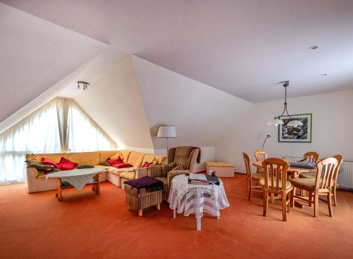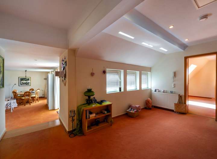 Während im Erdgeschoss ca. 125 m² Gewerbe- bzw. Praxisfläche zur Verfügung stehen, bietet das Dachgeschoss eine Wohnung mit ca. 105 m² Wohnfläche. Diese Aufteilung ermöglicht sowohl eine Eigennutzung als auch eine Vermietung. Ebenso ist eine Umnutzung der Gewerbeflächen in zusätzlichen Wohnraum problemlos umsetzbar.