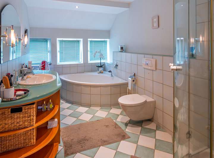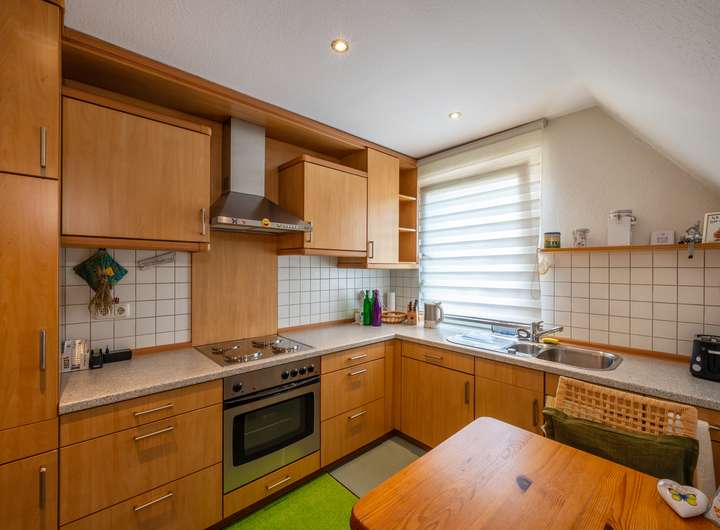 - Fenster mit Isolierverglasun, eine gedämmte Fassade und ein ausgebautes Zwerchdach tragen zur Energieeffizienz bei