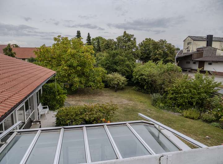 - Große Terrasse mit herrlichem Blick in den gepflegten Garten