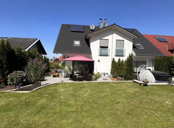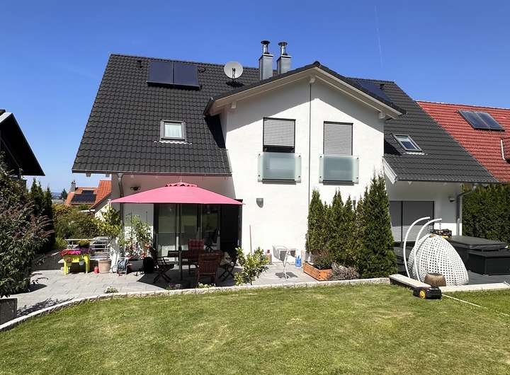 Bei der zweistöckigen Doppelhaushälfte handelt es sich um eine attraktive Immobilie, die sich durch eine luxuriöse Innenausstattung auszeichnet. Zu dem Haus zählen neben sechseinhalb attraktiven Zimmern ein Badezimmer und ein separates Gäste-WC. Besonders toll ist die großzügige Grundstücksgröße von 820 Quadratmetern, die Ihnen im Sommer eine private Fläche im Freien bietet. Außerdem ist ein barrierefreier Zugang zum Objekt möglich. Zum Objekt gehören praktischerweise eine Einbauküche sowie ein Kellerraum. Geheizt wird das im Jahr 2018 gebaute Objekt mit einer Gasheizung. Der monatliche Mietpreis liegt bei 2.200 Euro.