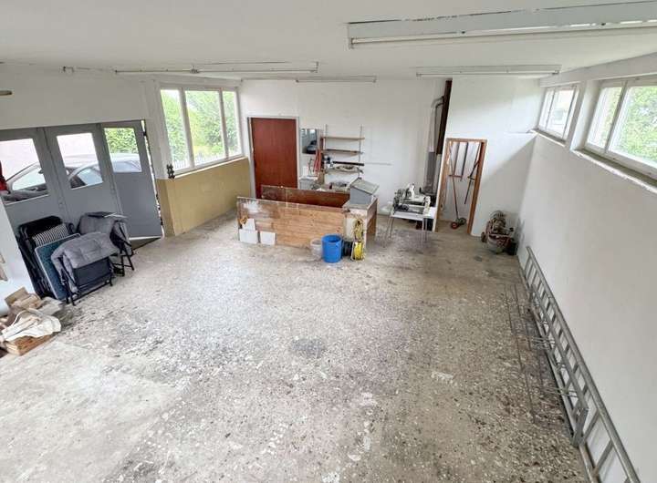 Das separate Werkstattgebäude auf dem Grundstück ist ein echtes Highlight. Mit einer Grundfläche von 109 m² und zwei integrierten Garagen bietet die Halle optimalen Platz für Ihr Handwerk, ob als Lager, Werkstatt oder für andere gewerbliche Zwecke. Dieses Gebäude ist ein entscheidender Pluspunkt für alle, die kurze Wege schätzen und das private und berufliche Leben miteinander verbinden möchten.