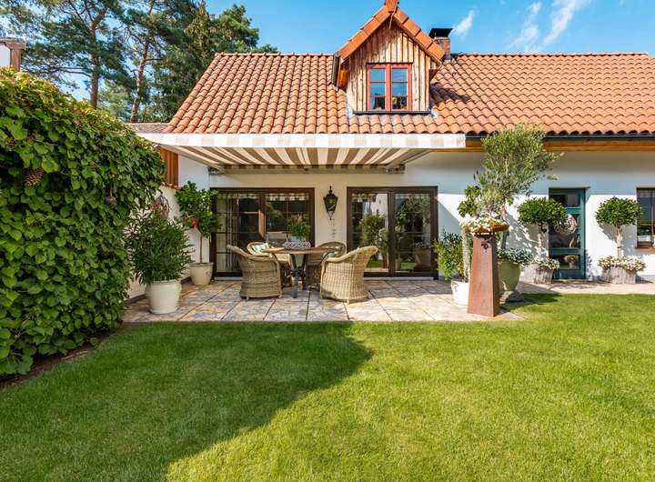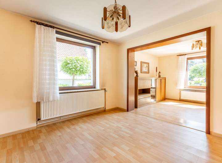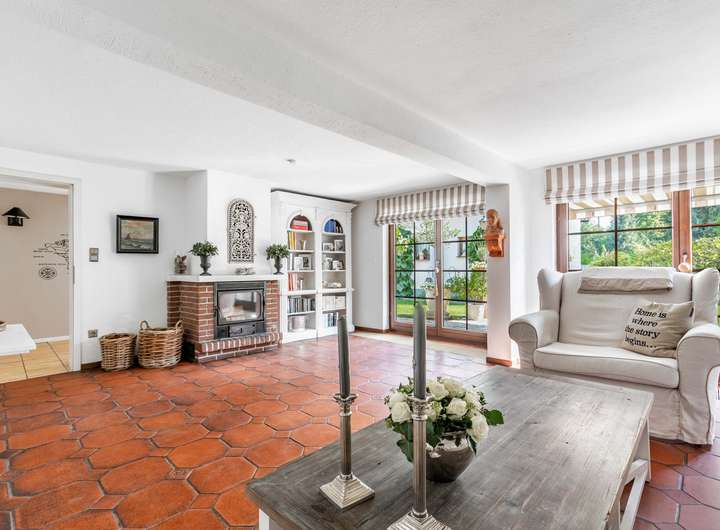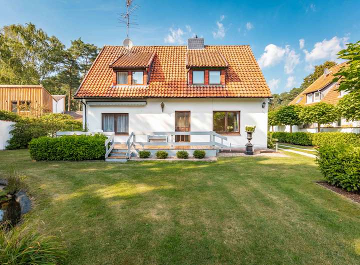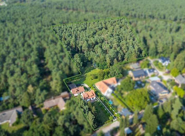 Standard? Kann jeder. Hier haben Sie die Chance, ein fast schon herrschaftliches Anwesen mit gut 11.000 qm Gesamtfläche zu erwerben. Bereits über die Zufahrt genießen Sie das Gefühl, etwas Besonderes sehen zu dürfen. Die Außenanlagen sind mit viel Herzblut angelegt und gepflegt. Im vorderen Teil befindet sich das ursprüngliche, massiv gebaute Einfamilienhaus. Dahinter liegt das modernisierte, kleinere Landhaus mit dem Charme eines Cottages. Im hinteren Bereich eröffnet sich der parkähnliche Garten, der ebenso liebevoll angelegt und gepflegt ist. Neben den großen, sonnigen Grünflächen findet sich hier auch eine Streuobstwiese. Wenn Sie darüber hinaus weiter in Richtung Norden gehen, gelangen Sie zu Ihrem zukünftigen, eigenen Wald mit insgesamt gut 8.000qm Fläche. Das Cottage wurde im Laufe der letzten 30 Jahren liebevoll modernisiert. So wurde das Dach mit französischen Tonziegeln eingedeckt, die Dachdämmung in dem Zuge erneuert und eine Gaube eingebracht. Auch die Elektrik wurde erneuert, die Fenster getauscht und weitere Modernisierungen durchgeführt. Die Einbauküche mit wertigen E-Geräten ist noch ganz jung. Entstanden ist ein Schmuckstück, welches Ihnen sofort ein Gefühl von Urlaub und ländlicher Gemütlichkeit gibt. Im Erdgeschoss befinden sich neben der Küche mit der modernen Einbauküche ein helles, freundliches Zimmer mit Kamin, ein Badezimmer und ein Hauswirtschaftsraum. Im Obergeschoss sind zwei süße Zimmer entstanden. Ob für Sie als Paar oder für Ihre Gäste, hier fühlen Sie sich sofort zu Hause. Das Vorderhaus entspricht der Größe eines normalen Einfamilienhauses und bietet mit insgesamt 6 Zimmern ausreichend Platz. Der bauliche Standard entspricht hier überwiegend dem Baujahr 1959, ist aber erhaltungsfähig, sofern Modernisierungen und der Erhalt gewünscht sind. Alternativ wäre hier auch Platz für Ihren Neubau. Hier gilt leben und leben lassen, hier genießen Sie Ihre Privatsphäre. Lassen Sie Ihren Traum wahr werden und überzeugen Sie sich selbst!
