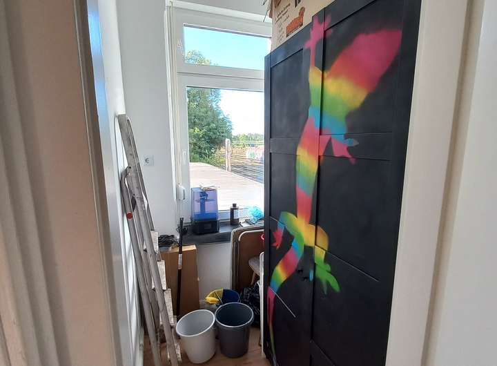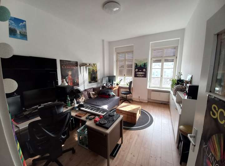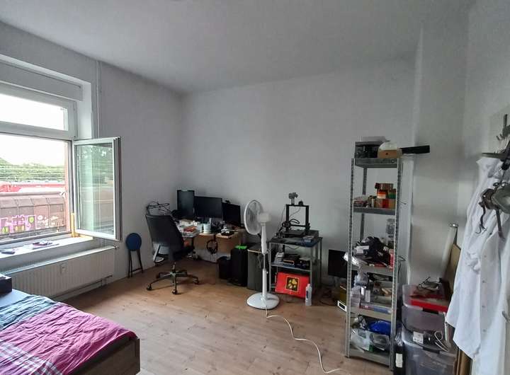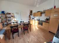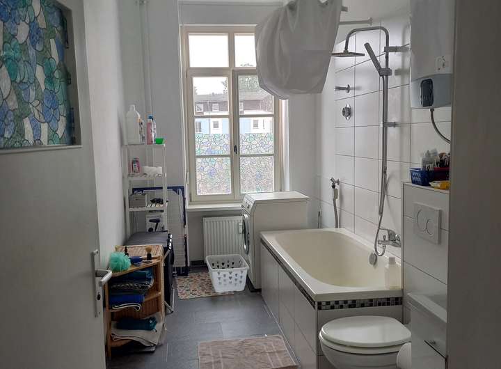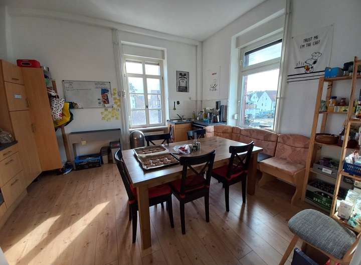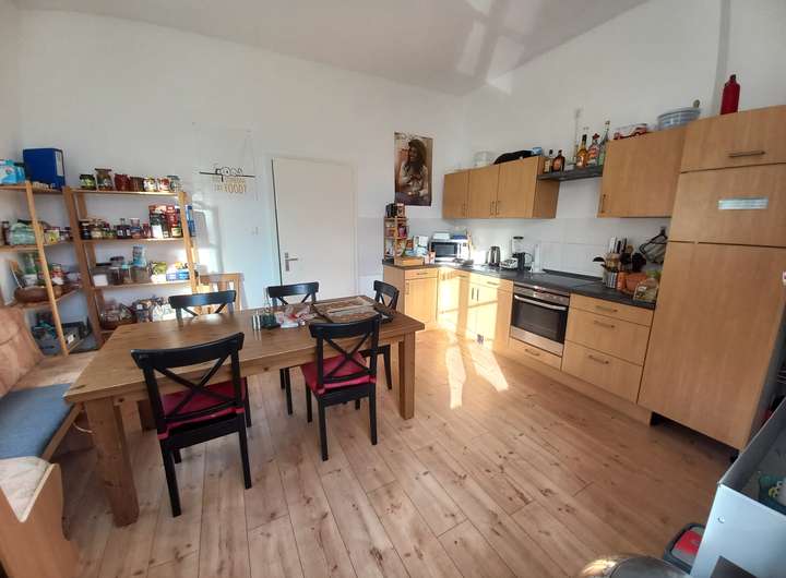 Besonders hervorzuheben ist die geräumige Küche, die viel Platz für gemeinsame Koch- und Essenszeiten bietet. Die vorhandene Einbauküche gehört den aktuellen Mietern und kann von den neuen Mietern bei Interesse übernommen werden.