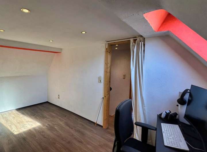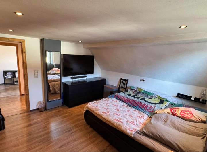 Im Dachgeschoss der Immobilie befindet sich das Schlafzimmer sowie ein weiteres Zimmer, welches sowohl als Arbeitszimmer, aber auch als Kinderzimmer genutzt werden kann.