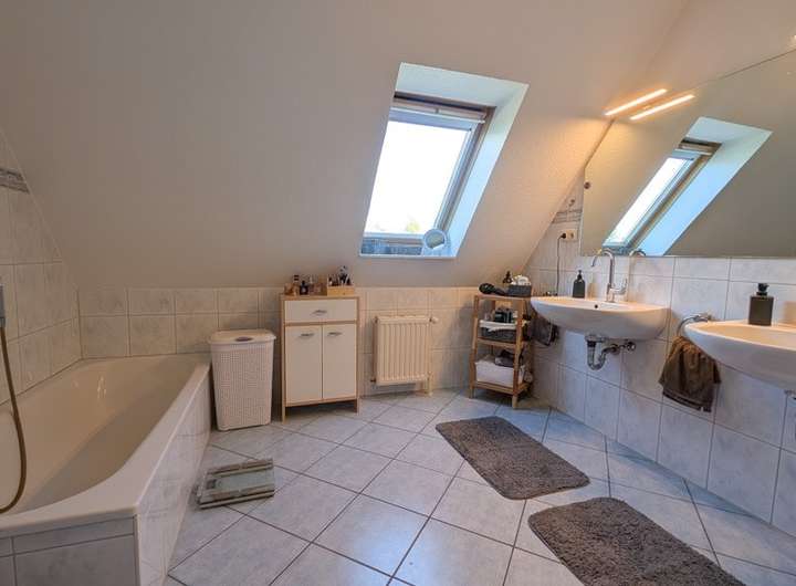 Dachgeschoss mit Ostseeblick: Flur, 2,5 Zimmer, Tageslichtbad mit Badewanne, Abstellraum;