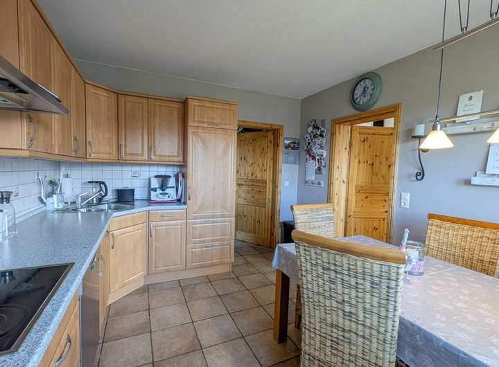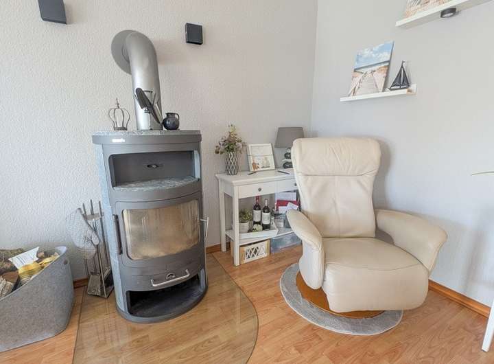 Erdgeschoss: Eingangsdiele, Wohn-/Esszimmer mit Ofen und Terrassenzugang, Küche mit Einbauküche, Hauswirtschafts-raum mit Außentür, Tageslichtbad mit ebenerdiger Dusche;