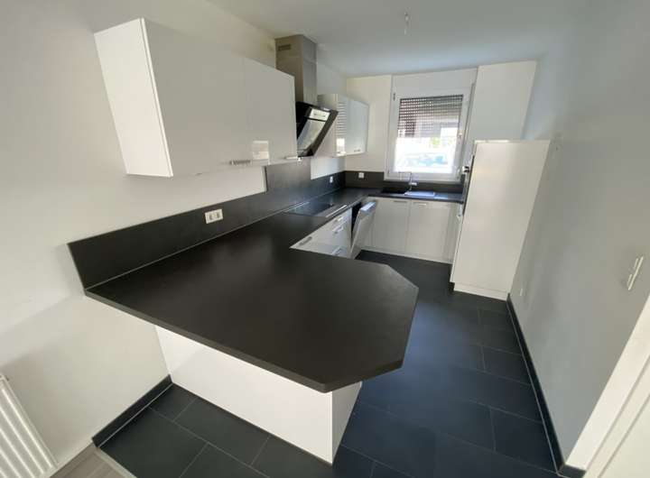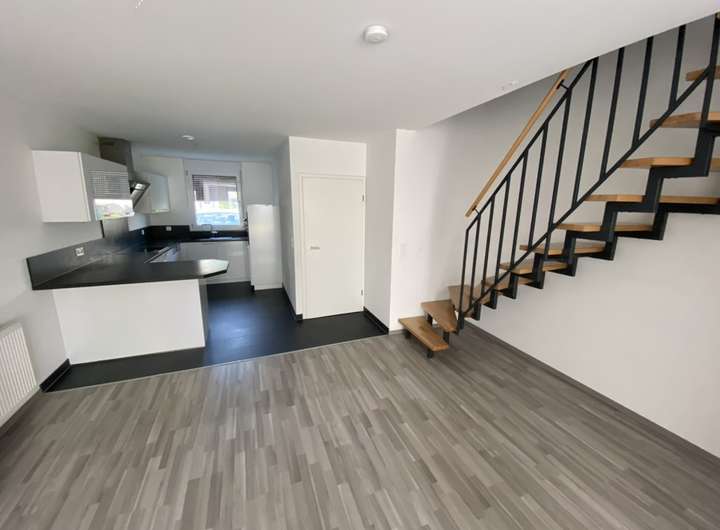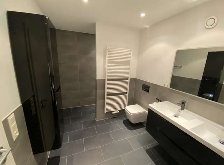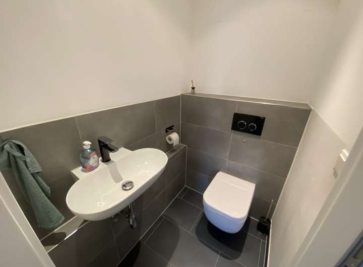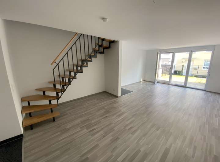 Im Eingangsbereich finden Sie nützlichen Stauraum für Garderobe und Schuhschränke sowie ein praktisches Gäste-WC. Von hier gelangen Sie in den offen gestalteten Wohn- und Essbereich. Eine moderne, hochwertige Einbauküche ist bereits integriert und im Mietpreis enthalten. Zugang zur sonnigen Terrasse mit angrenzendem, pflegeleichtem Garten rundet das Erdgeschoss perfekt ab.