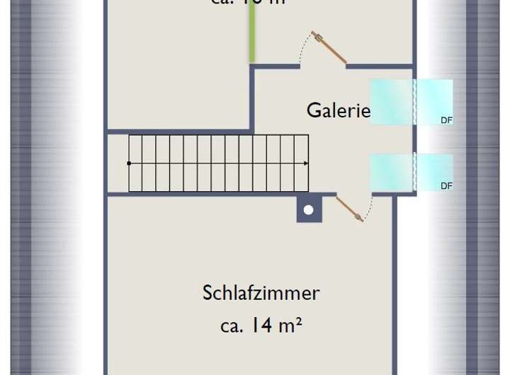 - zwei weitere Zimmer, eines mit Echtholzparkett und eines mit hellem Teppich ausgelegt sowie eine offene Galerie, die sich als heller Arbeitsbereich eignet