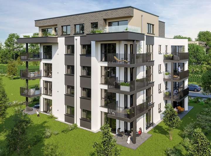 Das neue Haus wird mit viel Gefühl in das Umfeld eingefügt. Die modernen Wohnungen überzeugen durch ihre gelungene Verbindung von Licht, Exklusivität und optimaler Nutzungsmöglichkeit. Die Wirkung der bodentiefen Fenster mit feinen Unterteilungen wird durch die transparenten Balkonbrüstungen unterstrichen. Farben, Formen und Materialien sind harmonisch aufeinander abgestimmt. Das Gebäude wird in solider Mauerwerksbauweise errichtet und erfüllt alle Anforderungen gemäß GEG 2020. Fundamente und Bodenplatte in Beton. Die Außenwände sowie die tragenden Innenwände werden aus Kalksandstein bzw. Stahlbeton hergestellt. Die Geschossdecken bestehen aus Stahlbetondecken. Die Geschosstreppen sind ebenfalls aus Stahlbeton gefertigt. Sie werden mit polierten Granitstufen belegt. Auf das Außenmauerwerk wird ein Wärmedämmverbundsystem (WDVS) aufgebracht.