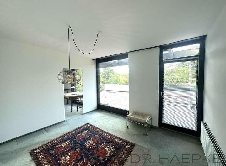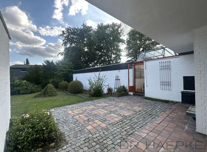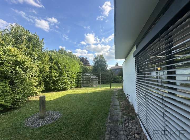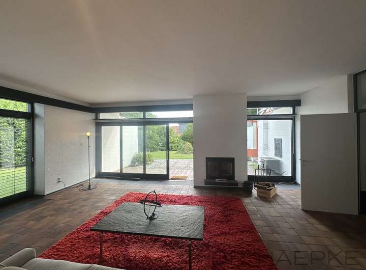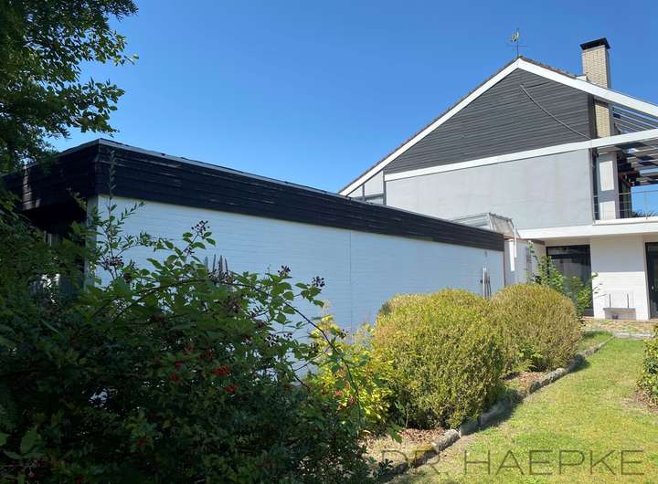 Das liebevoll geplante Wohnhaus wurde ca. 1968 in damals sehr zeitgemäß-moderner Bauweise errichtet und bietet auf einem ca. 1715m² Grundstück sowie mit ca. 178 m² Wohnfläche (plus ca. 120 m² Hobby- Nutzfläche in der ehemaligen Praxis) ein großes Maß an Wohnkomfort. Mit vielen kreativen und geschmackvollen Raffinessen sowie 2 Vollbädern plus zwei Gäste-WC, vielfältigen Ausblicken zum Außenraum und einer Küche mit halboffenem Übergang zum Essbereich (nebst überdachtem Patio-Essplatz) und einem großen Wohnzimmer, wird es selbst hohen Wohnansprüchen gerecht, während das fast uneinsehbare Grundstück den perfekten Ort für einen Rückzug aus dem Alltag darstellt und die Praxis sich als Atelier/Arbeitsbereich eignet.