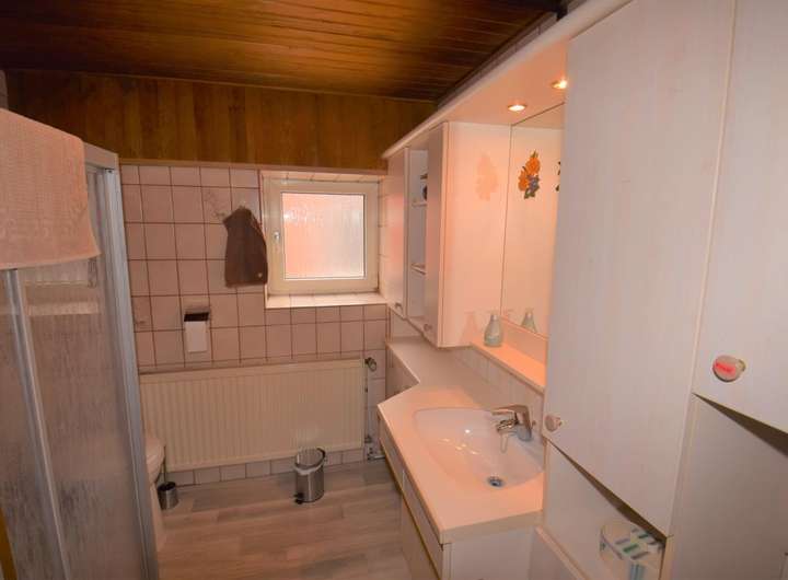 Das Vorderhaus wird seit ein paar Jahren als Ferienhaus genutzt und verfügt über zwei Schlafzimmer im Dachgeschoss, zwei Bäder, eine Wohnküche und ein geräumiges Wohn- und Esszimmer. Dieses verfügt über einen Kaminofenanschluss. Hinter dem Heizungsraum befindet sich noch ein praktischer Abstellraum.