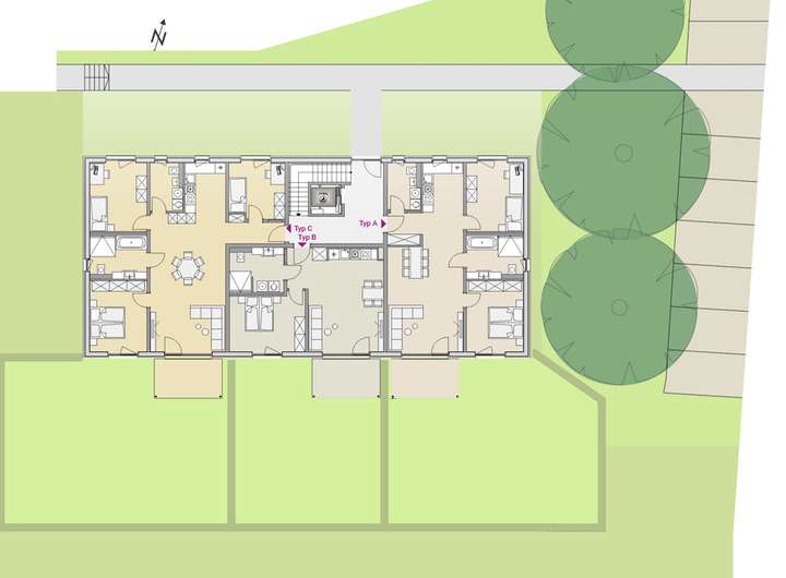 + Ruhige, begrünte Außenanlage mit eigenem Spielplatz