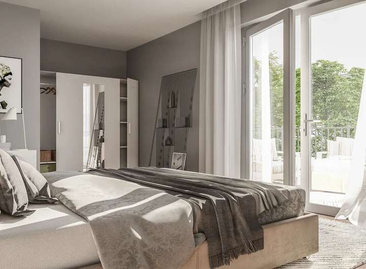 Das neue Haus wird mit viel Gefühl in das Umfeld eingefügt. Die modernen Wohnungen überzeugen durch ihre gelungene Verbindung von Licht, Exklusivität und optimaler Nutzungsmöglichkeit. Die Wirkung der bodentiefen Fenster mit feinen Unterteilungen wird durch die transparenten Balkonbrüstungen unterstrichen. Farben, Formen und Materialien sind harmonisch aufeinander abgestimmt. Das Gebäude wird in solider Mauerwerksbauweise errichtet und erfüllt alle Anforderungen gemäß GEG 2020. Fundamente und Bodenplatte in Beton. Die Außenwände sowie die tragenden Innenwände werden aus Kalksandstein bzw. Stahlbeton hergestellt. Die Geschossdecken bestehen aus Stahlbetondecken. Die Geschosstreppen sind ebenfalls aus Stahlbeton gefertigt. Sie werden mit polierten Granitstufen belegt. Auf das Außenmauerwerk wird ein Wärmedämmverbundsystem (WDVS) aufgebracht.
