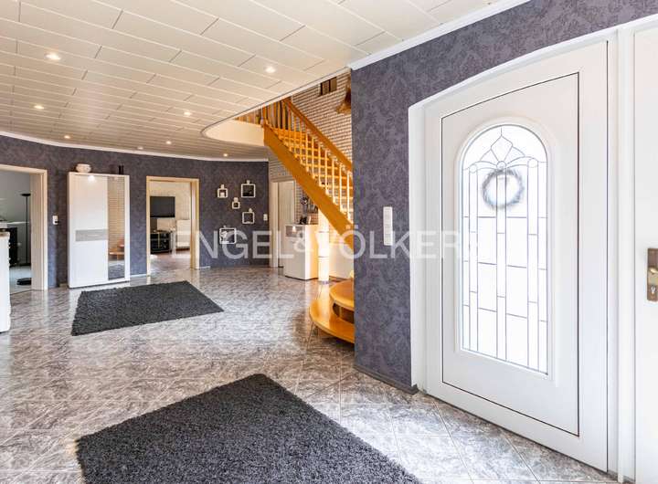 Dieses großzügige Einfamilienhaus mit Einliegerwohnung und Doppelgarage befindet sich in einer ruhigen Sackgassenlage der charmanten Ortschaft Rechtsupweg. Die im Jahr ca. 1996 erbaute Immobilie überzeugt durch eine durchdachte Raumaufteilung, eine solide Bauweise und ein beeindruckendes Platzangebot – ideal für Familien oder Mehrgenerationenwohnen. Im Erdgeschoss erwartet Sie ein lichtdurchfluteter Dielenbereich, von dem aus alle Räumlichkeiten bequem erreichbar sind. Der Hauswirtschaftsraum bietet direkten Zugang zur Doppelgarage sowie in den Außenbereich – praktisch für den Alltag. Ein Gäste-WC, ein separates Duschbad sowie ein helles Büro stehen ebenfalls zur Verfügung. Das großzügige Wohnzimmer mit direktem Zugang zur Terrasse lädt zum Verweilen ein. Die angrenzende hochwertige Einbauküche rundet das Raumangebot im Erdgeschoss ab. Über die Diele gelangen Sie in das Obergeschoss des Hauses, das mit einem großzügigen Schnitt und viel Platz überzeugt. Hier befinden sich zwei Kinderzimmer, ein geräumiges Schlafzimmer mit begehbarem Kleiderschrank und direktem Zugang zur Loggia sowie ein voll ausgestattetes Badezimmer mit Badewanne und Dusche. Besonders attraktiv ist die separate Einliegerwohnung über der Garage. Diese ist über einen eigenen Eingang zugänglich und ideal als Gäste-, Jugend- oder Mietwohnung nutzbar. Sie verfügt über einen Flurbereich, ein modernes Duschbad, eine Küche, ein Wohnzimmer sowie ein Schlafzimmer. Der Außenbereich ist eine wahre Wohlfühloase: pflegeleicht angelegt, großzügig gestaltet und mit zwei Terrassen ausgestattet – eine davon überdacht, perfekt für jedes Wetter. Genießen Sie hier entspannte Stunden im Grünen.