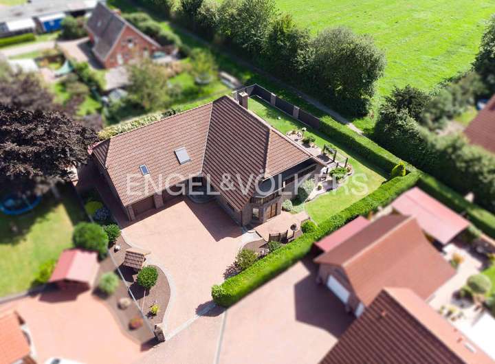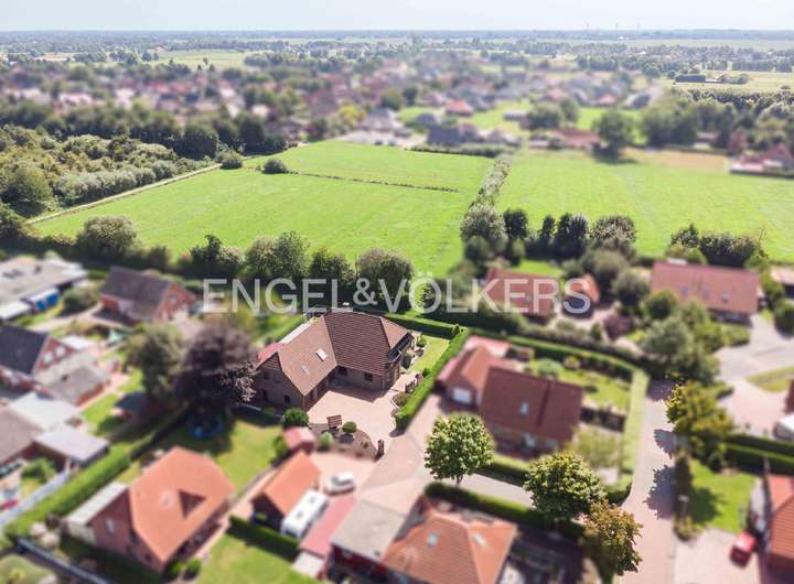 Diese großzügige Immobilie befindet sich in Rechtsupweg, eine kleine Gemeinde im Landkreis Aurich in Niedersachsen und gehört zur Samtgemeinde Brookmerland. Die Lage überzeugt durch ihre ruhige, naturnahe Umgebung inmitten der ostfriesischen Landschaft – ideal für Menschen, die ländliche Idylle schätzen und dennoch eine gute Erreichbarkeit der umliegenden Städte wünschen. Der Ort ist verkehrstechnisch gut angebunden: Die Bundesstraße B72 verläuft nur wenige Minuten entfernt und ermöglicht eine schnelle Verbindung nach Norden, Aurich und Emden. Der nächstgelegene Bahnhof befindet sich im etwa 4 km entfernten Marienhafe und bietet regelmäßige Zugverbindungen Richtung Norddeich Mole und Emden. Der öffentliche Nahverkehr wird durch Buslinien ergänzt, die die umliegenden Ortschaften anfahren. Einkaufsmöglichkeiten, Ärzte, Apotheken sowie Grund- und weiterführende Schulen sind im nahegelegenen Marienhafe vorhanden und mit dem Auto oder Bus gut erreichbar. Kindergärten und Grundschule befinden sich direkt in Rechtsupweg. Die medizinische Grundversorgung ist gesichert, Krankenhäuser befinden sich in Aurich (ca. 20 km) und Norden (ca. 15 km). Insgesamt bietet Rechtsupweg eine ruhige Wohnlage mit guter Anbindung und allen wichtigen Einrichtungen des täglichen Lebens im direkten Umfeld. Ideal für Familien, Ruhesuchende und alle, die das Leben auf dem Land mit der Nähe zur Küste verbinden möchten.