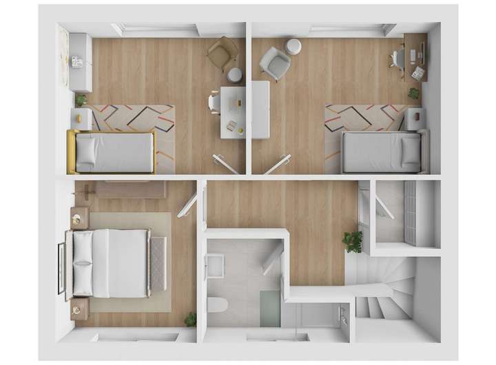 Im Obergeschoss finden Sie die drei Schlafzimmer vor, von denen das Hauptschlafzimmer über ein eigenes Bad en Suite verfügt. Das zweite Badezimmer steht den übrigen Bewohnern zur Verfügung.
