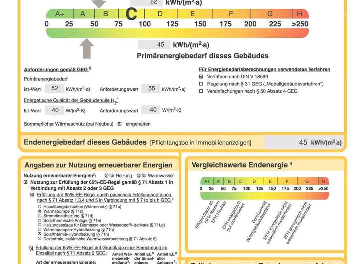 | Energieverbrauchskennwert | 45,0 kWh/(m²*a) |