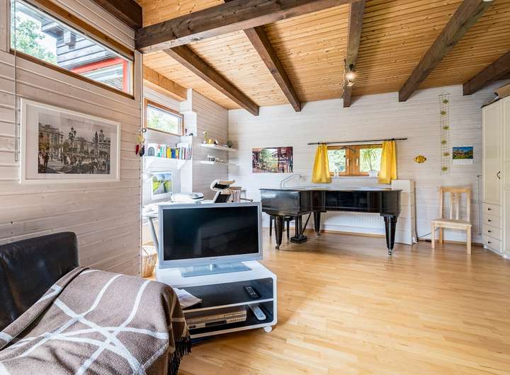 Die Verwendung von viel Holz im Innenbereich verleiht dem Haus insgesamt eine warme und gemütliche Atmosphäre.