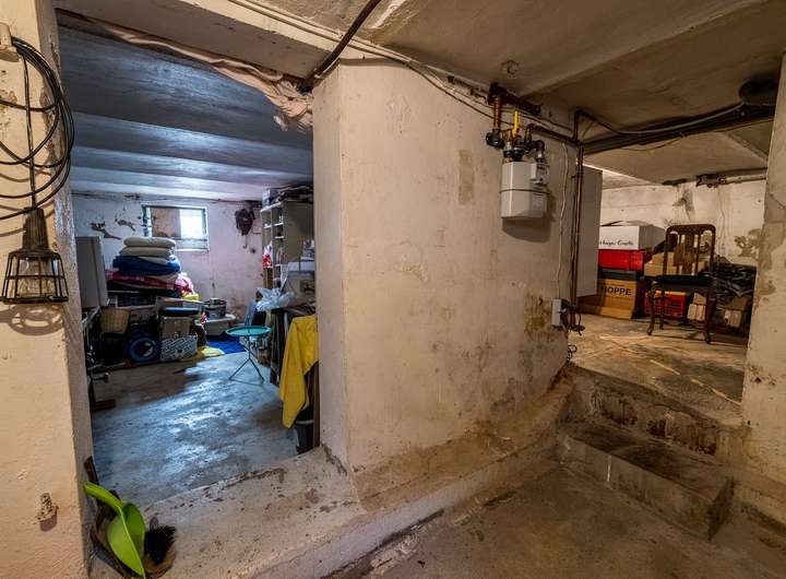 Der Keller hat auf Grund des Alters ein paar Risse aufzuweisen und auch die Wände haben etwas Feuchtigkeit.