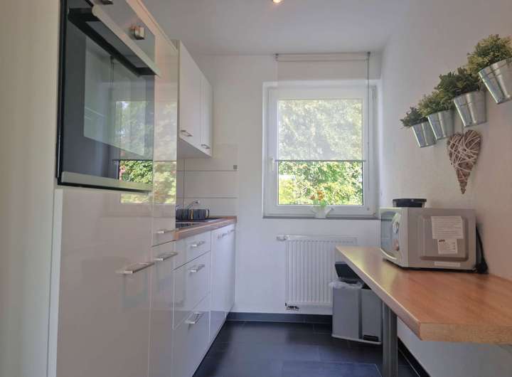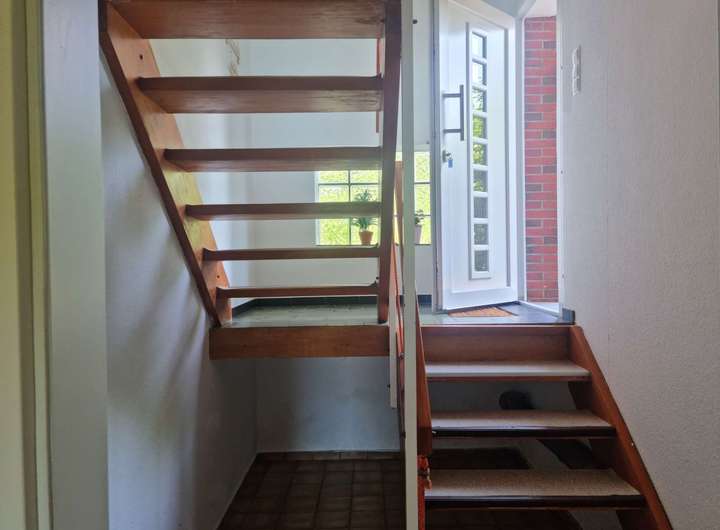 Im Souterrain stehen Ihnen drei kleinere Zimmer zur Verfügung, die sich flexibel als Gästezimmer, Büro oder Hobbyraum nutzen lassen. Über die Treppe gelangen Sie ins 1. Obergeschoss: Hier erwarten Sie eine separate Küche mit moderner Einbauküche sowie ein offener Wohn- und Essbereich mit Zugang zum ersten Balkon.