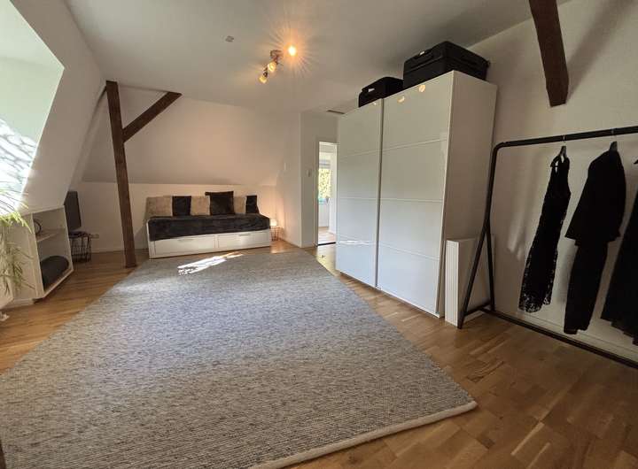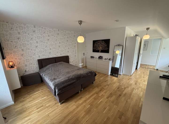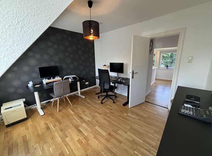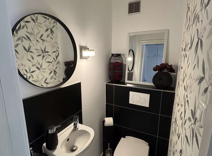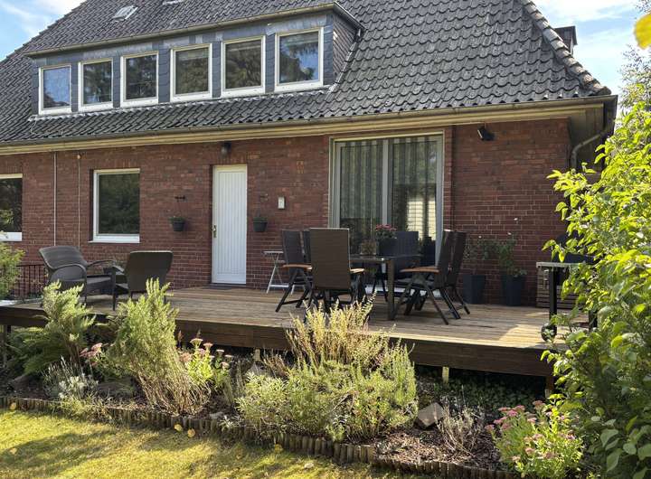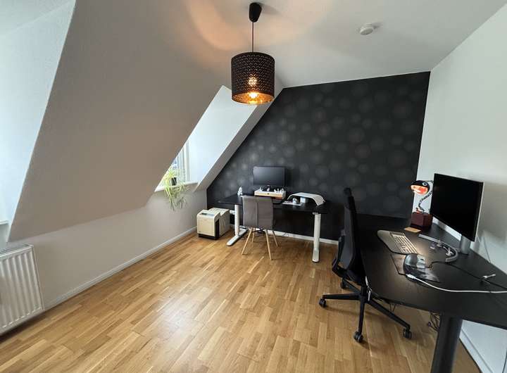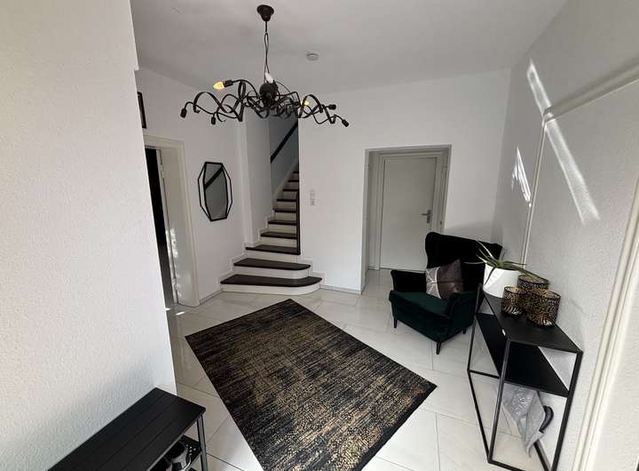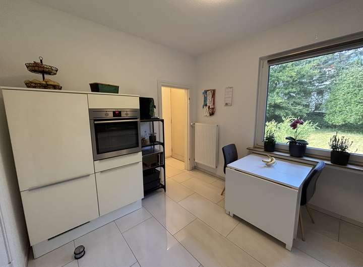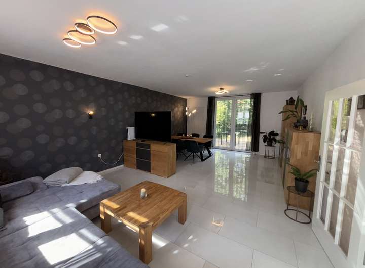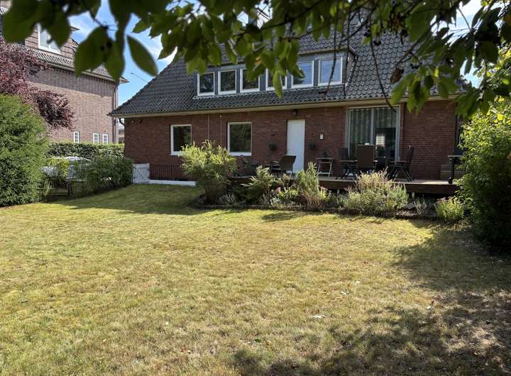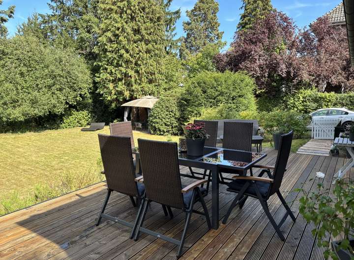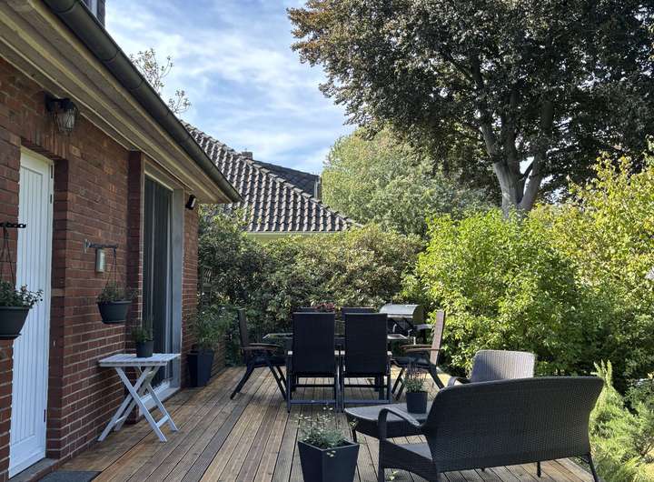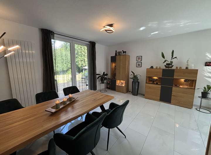 Dieses liebevoll sanierte Einfamilienhaus mit separater Einliegerwohnung besticht durch seinen besonderen Charme, durchdachte Details und Wohnatmosphäre. Schon beim Betreten empfängt Sie ein heller, einladender Flur, der direkt in das großzügige Wohnzimmer führt. Die große Terrassentür öffnet den Blick ins Grüne und schenkt dem Raum ein wunderbares Licht. Im Untergeschoss sorgen moderne Fliesen für eine angenehme Frische, während im Obergeschoss Eichenparkett Behaglichkeit schafft. Die helle Küche, ausgestattet mit hochwertigen Geräten, lädt zum gemeinsamen Kochen ein. Ein modernes Gäste-WC rundet den Wohnkomfort im Erdgeschoss ab. Im Obergeschoss erwartet Sie ein geräumiges Badezimmer mit Badewanne, Dusche und Tageslicht – direkt en Suite erreichbar, aber auch vom Flur aus zugänglich. Dazu kommen ein lichtdurchflutetes Schlafzimmer und zwei weitere Zimmer, die flexibel als Kinderzimmer, Büro oder Gästezimmer genutzt werden können. Die separate Einliegerwohnung bietet mit eigenem Eingang Unabhängigkeit. Zwei Zimmer – eines davon mit Anschlüssen für eine Pantryküche – eröffnen zahlreiche Möglichkeiten: ob für erwachsene Kinder, Gäste, Arbeiten im Homeoffice oder als zusätzliche Einkommensquelle. Auch hier ist mit Parkettboden und einem kleinen, hellen Duschbad an Komfort gedacht. Der großzügige Keller bietet ausreichend Stauraum, beispielsweise für eine ganzjährige Dekoration, sowie einen großen Waschkeller, der den Alltag erleichtert. Der Außenbereich ist ein echtes Highlight: Ein pflegeleichter Garten mit großzügigem Naturgartenanteil schenkt Ihnen Ruhe und Natürlichkeit. Auf der weitläufigen Douglasien-Terrasse finden Sie Ihren neuen Lieblingsplatz zum Entspannen, Genießen und Verweilen. Sorgfältig modernisiert - Fenster (2018 & 2021) - Eingangstür (2021) - Fußböden (2020, 2021) - Heizkörper (2020) - Gäste-WC (2021) - Moderne Bäder (2016) - Elektrik auf aktuellem Stand