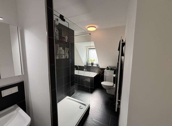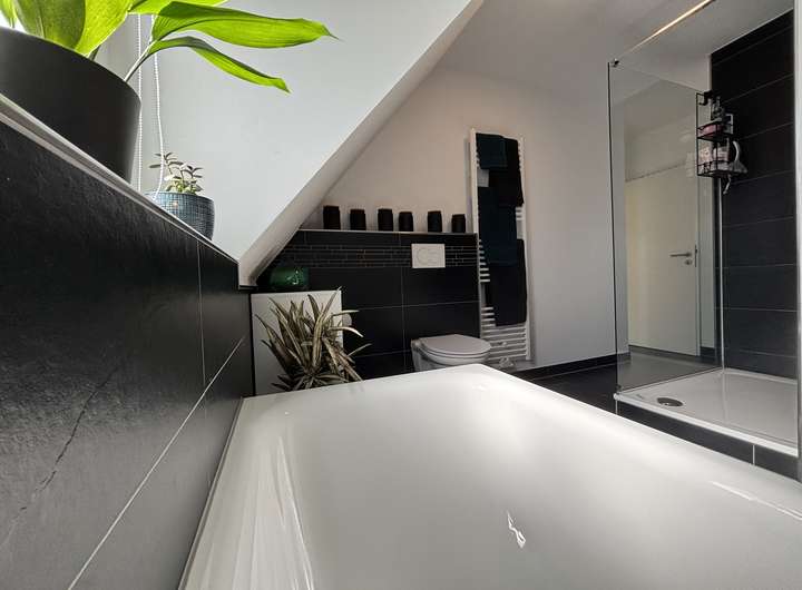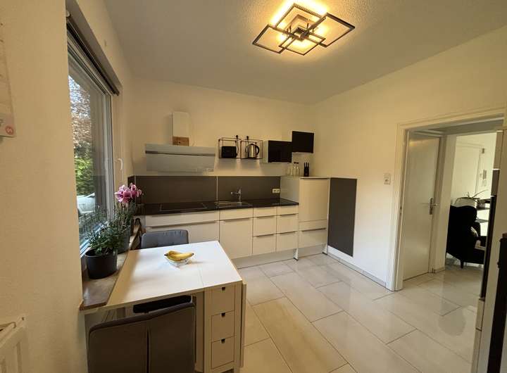 - Alle Fenster im Wohnbereich modernisiert inklusive Schallschutz zur Straßenseite - Neue Eingangstür - Weiße Holztüren in den Wohnräumen - Helle Feinsteinzeugfliesen im Erdgeschoss - Schiffsboden Eichenparkett im Obergeschoss - Badezimmer en Suite sowie vom Flur mit großzügiger Dusche und großer Badewanne - Moderne helle Nobilia Küche mit AEG und Siemens Geräten - Induktionskochfeld, Spülmaschine und Backofen erhöht, Granitarbeitsplatte - Gäste-WC - Separate Einliegerwohnung mit vielfältigen Nutzungsmöglichkeiten - Fischgräten Eichenparkett in der Einliegerwohnung - Separater Eingang zur Einliegerwohnung - Rückbau der Verbindung zwischen Haupthaus und Einliegerwohnung einfach möglich - Großzügiger Keller mit ausreichend Stauraum - Waschküche mit Platz für Waschmaschine, Trockner und zum trocknen von Wäsche - Großzügige Douglasienholz-Terrasse von ca. 32 m2 - Mögliche weitere kleine Terrasse an der Garage im Garten - Großzügige Einfahrt zur Massivbau Garage