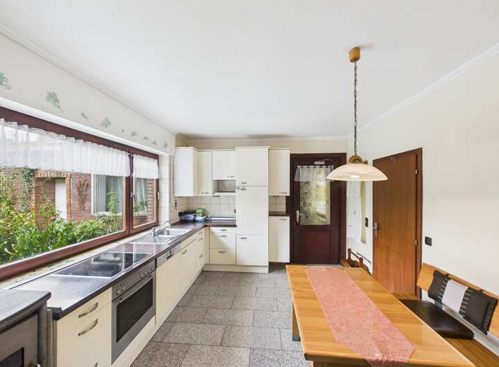 Das Erdgeschoss umfasst ca. 95 m² und überzeugt mit großzügigen, lichtdurchfluteten Räumen und einer durchdachten Aufteilung. Herzstück ist das weitläufige Wohnzimmer, das direkt an den traumhaften Wintergarten grenzt - mit herrlichem Blick in die umliegende Natur und direktem Zugang zum gepflegten Garten und der Sonnenterrasse. Die moderne Einbauküche lässt ebenfalls keine Wünsche offen.