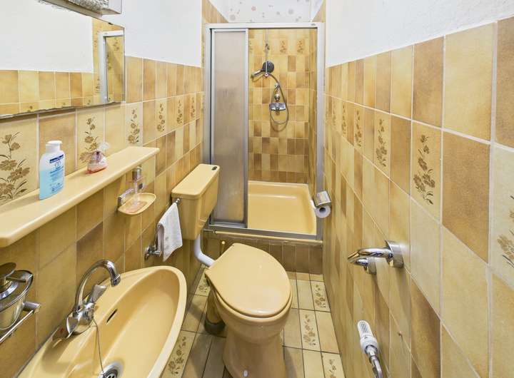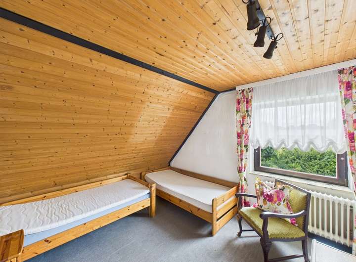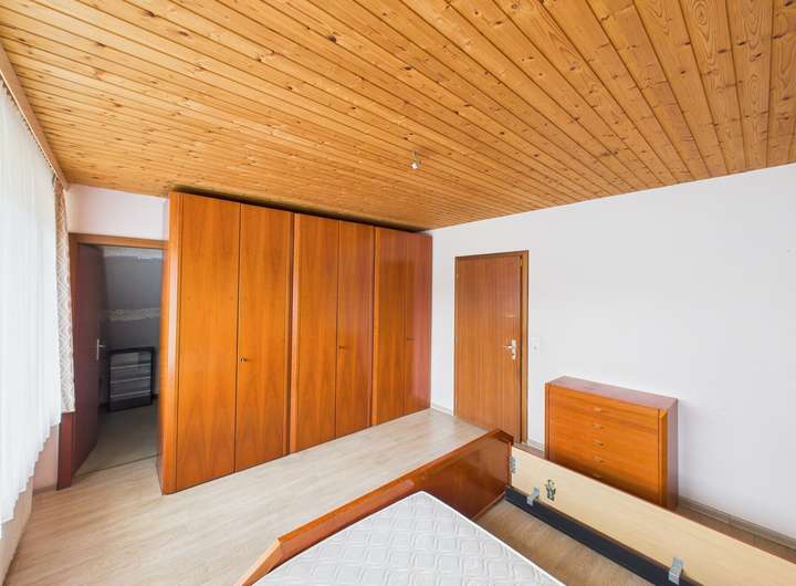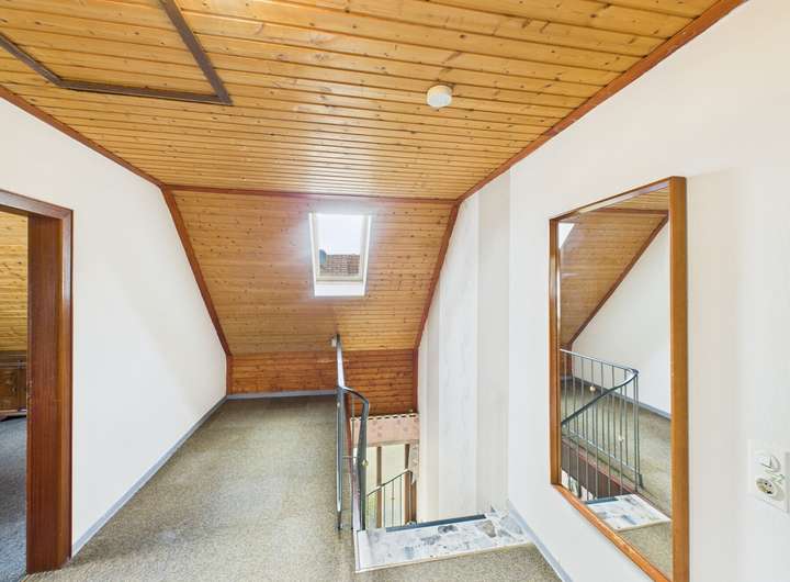 Im Obergeschoss stehen Ihnen drei mögliche Schlafzimmer sowie ein helles Tageslichtbad mit Badewanne zur Verfügung. Auch hier entfaltet sich der rustikale Altbaucharme in besonderer Weise.