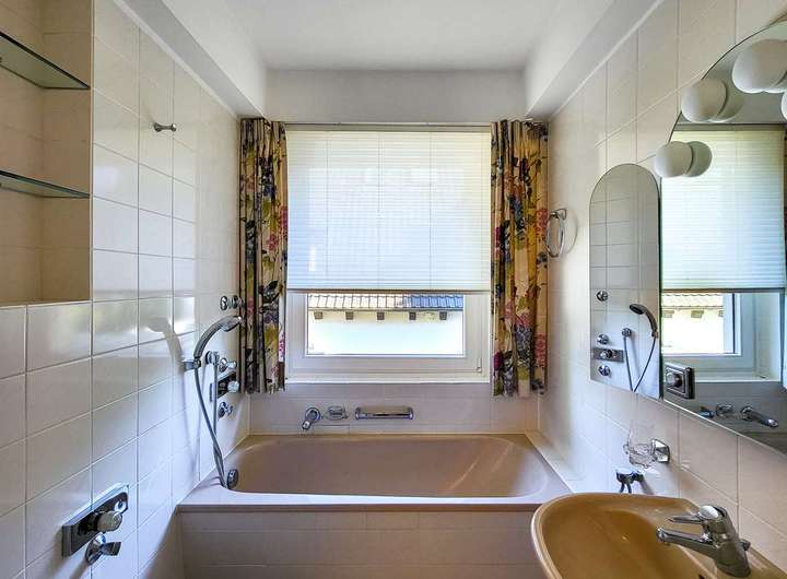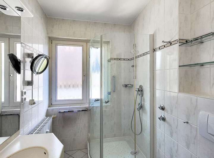 Einige Kellerräume sind durch die großen Fenster angenehm hell. Im Keller befinden sich zusätzlich ein WC und ein gefliester Wäscheraum mit Anschlüssen für die Waschmaschine.