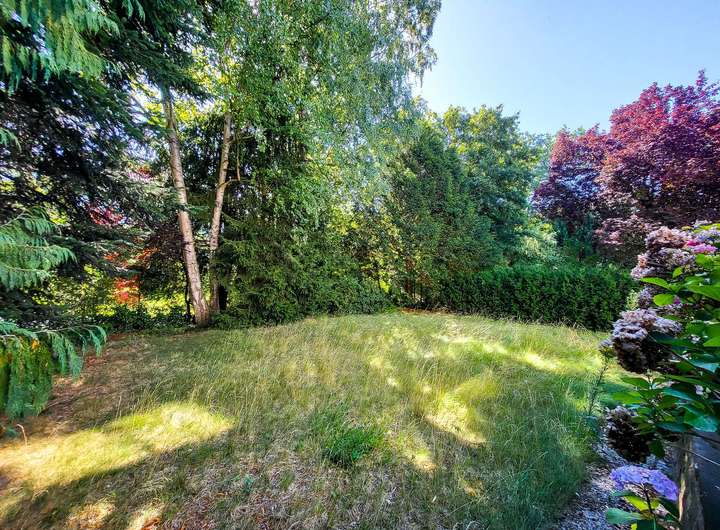 Der Garten ist durch gewachsenen Baumbestand sichtgeschützt und in seiner Gestaltung angenehm pflegeleicht. Die beiden Garagen schotten den Garten zum Vorgarten und zur Straße ab, sodass bei Bedarf die Gartennutzung exklusiv den Bewohnern der Erdgeschosswohnung vorbehalten werden kann und Kinder einen sicheren Bereich zum Spielen haben. Vor den Garagen ist noch ausreichend Platz, um weitere Fahrzeuge abzustellen.