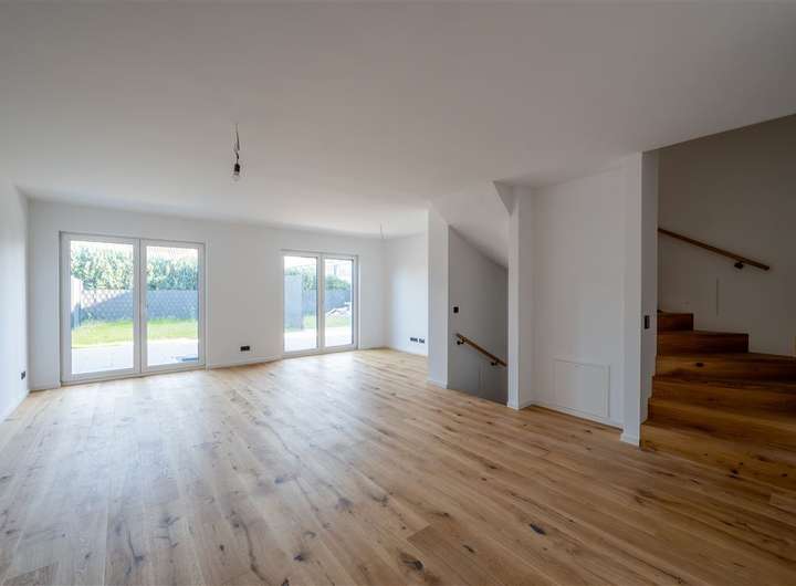 Schon beim Betreten empfängt Sie eine helle Diele (ca. 6 m²) mit praktischem Gäste-WC. Von hier öffnet sich der großzügige Wohn- und Essbereich (ca. 31 m²) mit bodentiefen Fenstern, die das Tageslicht hereinfluten lassen und einen harmonischen Übergang nach draußen schaffen. Angrenzend liegt die offene Küche (ca. 11 m²), die zum Kochen und gemeinsamen Genießen einlädt.