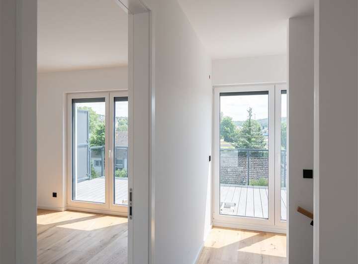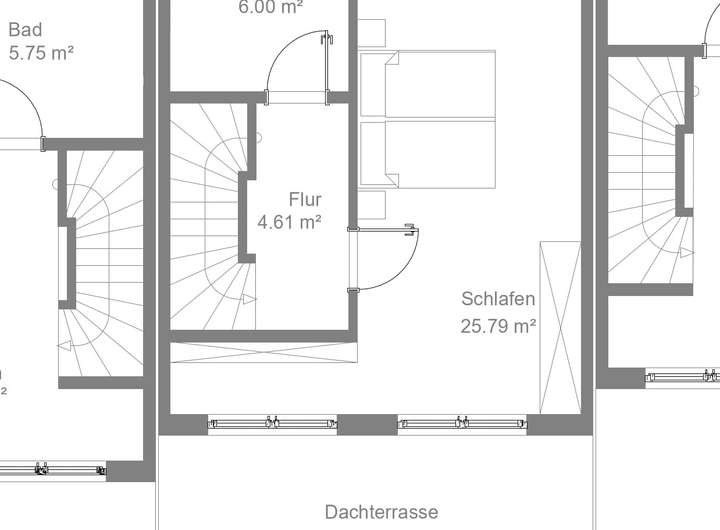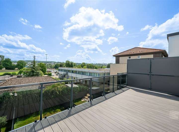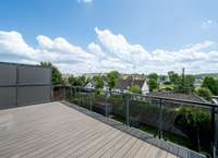Das Dachgeschoss ist dem Elternbereich vorbehalten: Ein großzügiges Schlafzimmer (ca. 26 m²) bildet den Mittelpunkt, flankiert von einem stilvollen Tageslichtbad (ca. 6 m²). Besonders hervorzuheben ist die Dachterrasse (ca. 17 m²), die Ihnen einen exklusiven Rückzugsort mit herrlichem Weitblick bietet – ob zum Sonnenaufgang mit dem ersten Kaffee oder zum Sonnenuntergang bei einem Glas Wein.