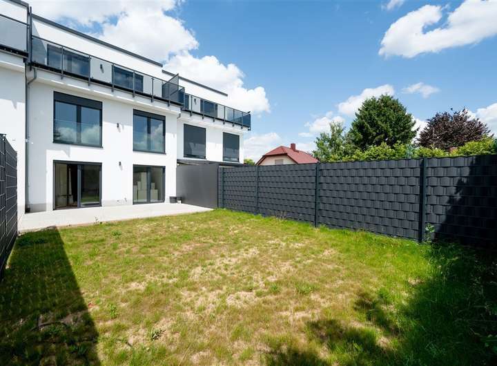 Die Terrasse mit Glaspergola (ca. 7,6 m²) führt in den privaten Garten – ein idealer Platz für entspannte Sommerabende, Familienfeste oder einfach eine Auszeit im Grünen.