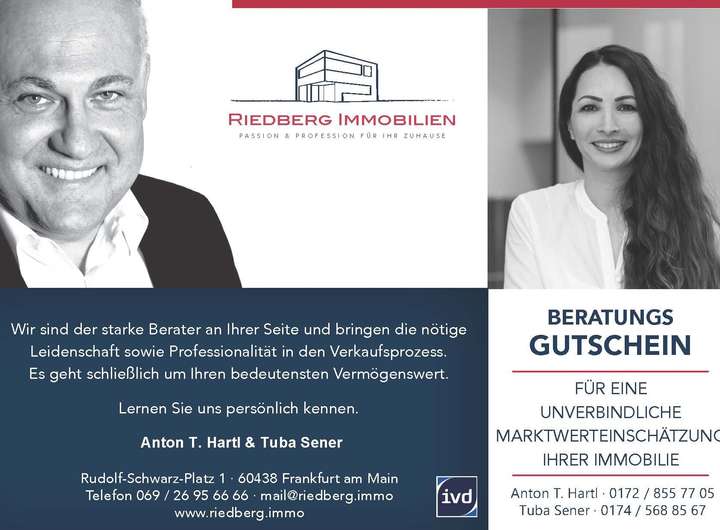 Die Firma Riedberg Immobilien eK unterstützt und berät in dieser Verkaufssache den Eigentümer