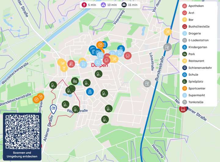 Dieses Einfamilienhaus in Dörpen bietet eine ideale Lage für Familien und Ruhesuchende gleichermaßen. In der unmittelbaren Umgebung finden sich zahlreiche Spielplätze, die für Kinder ein Paradies zum Spielen und Entdecken darstellen. Für die Kleinsten sind mehrere Kindergärten bequem erreichbar, während die nahegelegene Grundschule und das Gymnasium den Schulweg für ältere Kinder angenehm kurz gestalten.