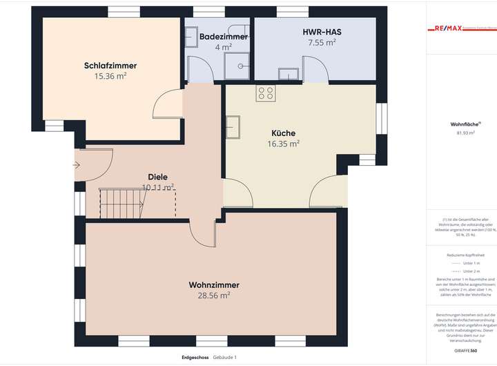 Gesamte Wohnfläche Erdgeschoss: 81,93 m²