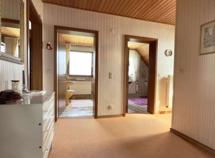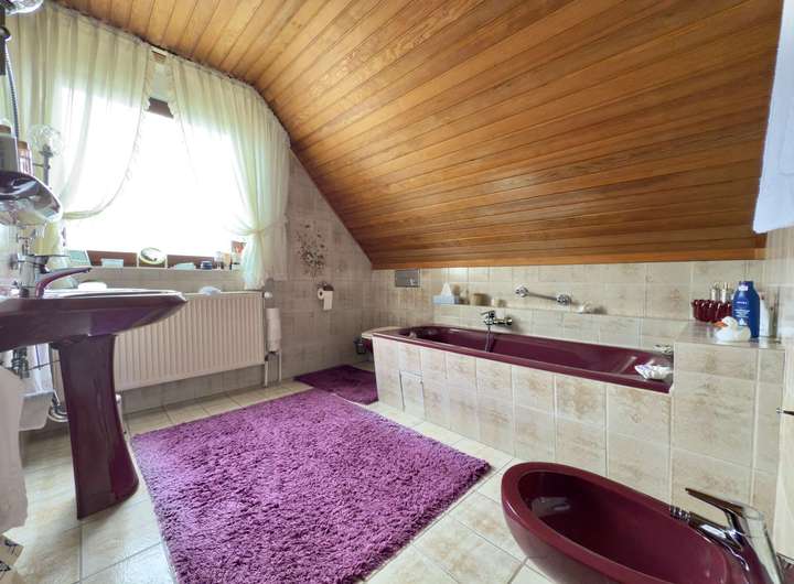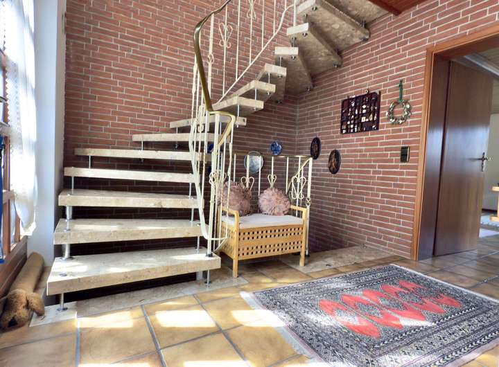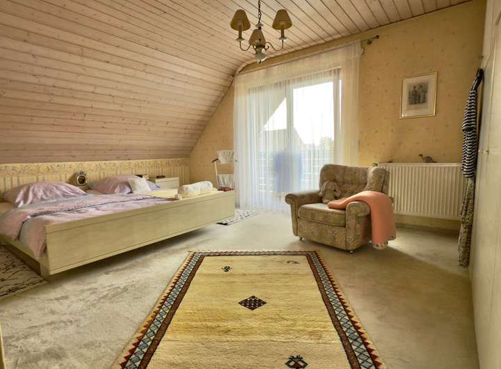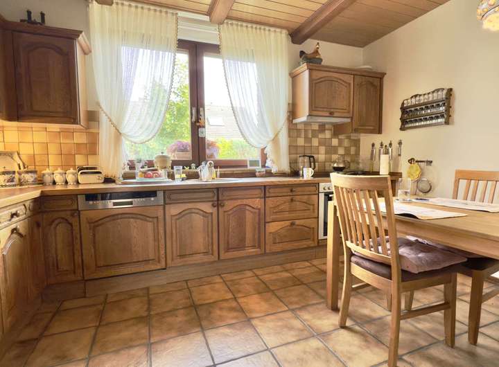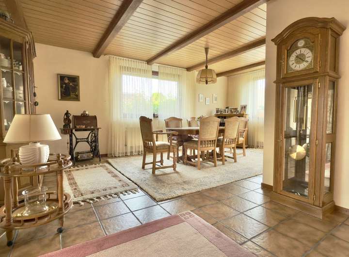 - Einfamilienhaus - Baujahr: 1982 - harte Dacheindeckung - Außenwände mit Hartschaum-Dämmung und Klinker - unterkellert - Grundstück: ca. 595 qm - Wohnfläche insges. ca. 160qm (EG: ca. 90qm, OG: ca. 70qm) - Dachboden - Heizung: Gas-Zentralheizung, Warmwasserspeicher (selbstbeheizt) Hinweis: Heizung ist funktionsfähig, wird aber in nächster Zeit getauscht werden müssen - Wandheizkörper - Holzfenster 2-fach verglast - Außenjalousien (teilw. elektr.) - Bodenbeläge: textile Beläge und Fliesen - Ältere, aber funktionstüchtige EBK (elektr. Geräte neu um 2021) - Elektr. Markise (Terrasse) - Pflegeleichter sowie ansprechend gestalteter Garten - Gartenbrunnen mit Pumpe - Garage mit Licht und Strom und manuellem Schwenktor --- Wir weisen Sie bereits an dieser Stelle darauf hin, dass wir grundsätzlich keine Gewährleistung für uns übermittelte Eigentümerinformationen übernehmen wie z.B. der Bau- und Leistungsbeschreibung, Aussagen zur Haustechnik, Nebenkosten, zu Bebauungs- und Nutzungsformen sowie steuerlichen Komponenten oder etwaigen Flächenangaben der jeweiligen Immobilie. Diese Angaben sind von Ihnen vor Vertragsabschluss in jedem Fall zu prüfen. Inventar ist nur dann im Kaufpreis enthalten, wenn dies schriftlich so vereinbart ist. Auf den Fotos ggf. enthaltene Einrichtungsgegenstände sind nicht im Kaufpreis enthalten.