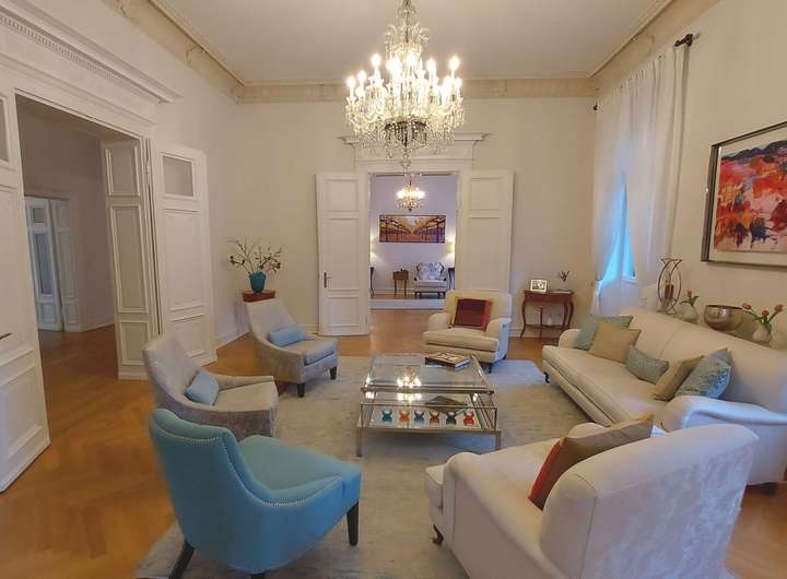 - ca. 3,80 m hohe Decken mit aufwendig restaurierten Original Stuckrosetten und Gesimsen