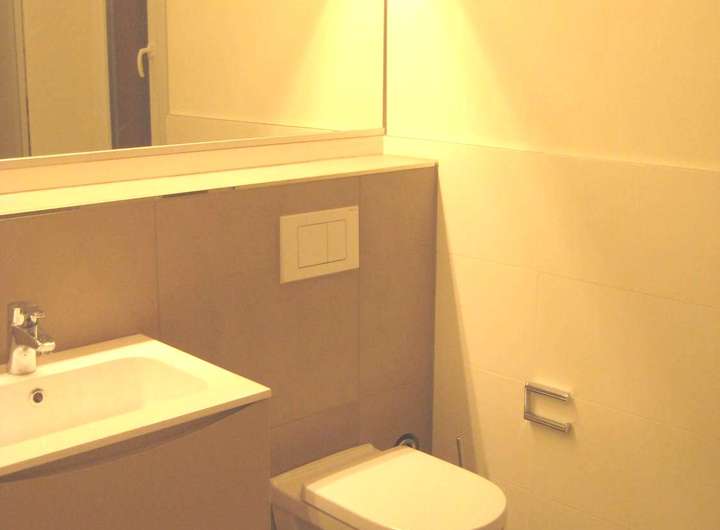 - Modernes, sehr hochwertiges und geräumiges Tageslichtbad mit Eckbadewanne und ebenerdiger Regenwald-Dusche. Designer Sanitärobjekte (Phillip Starck) WC und Bidet. Doppelwaschtisch mit Unterschränken und großem beleuchteten Spiegel