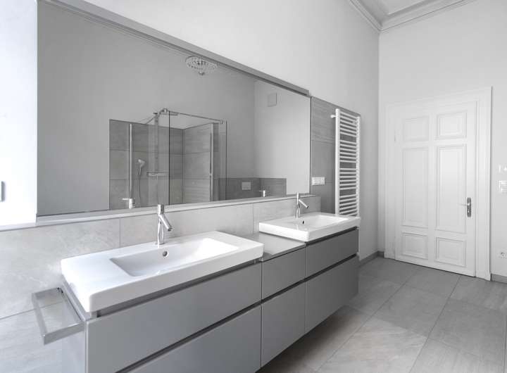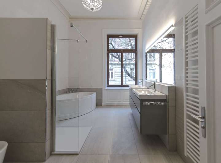- Moderne, separat regelbare Fußbodenheizung. In Bädern zusätzliche Handtuchhalterheizkörper