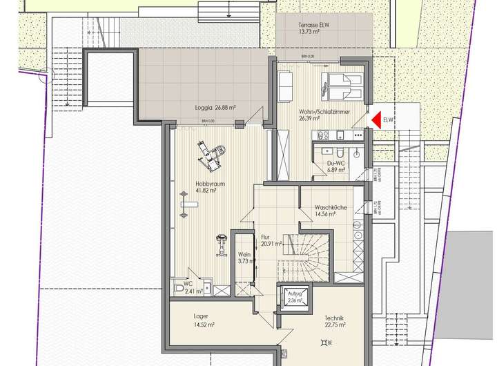 Das Gartengeschoss besticht durch seine vielseitige Nutzbarkeit und den direkten Bezug zum Außenbereich mit Pool und vielseitigen Freiflächen. Ein großzügiger Hobbyraum mit Zugang zum Garten und einer Loggia bietet Ihnen zahlreiche Nutzungsmöglichkeiten – ob als Fitnessbereich, Heimkino oder kreatives Atelier. Besonders attraktiv ist die separate Einliegerwohnung mit eigenem Duschbad, die sich ideal für Gäste, Au-pair oder als Homeoffice eignet. Im hinteren Gebäudeteil befinden sich die Technikräume und zusätzliche Nutzflächen, die reichlich Stauraum und funktionale Möglichkeiten bieten, ohne den Wohnbereich zu beeinträchtigen.