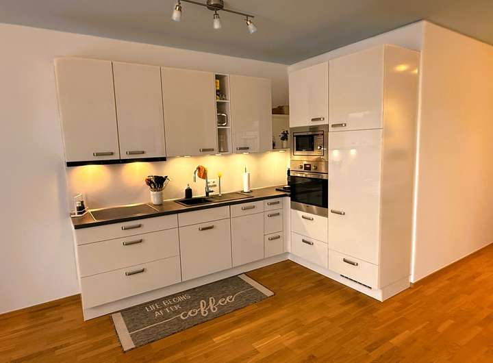 Die modern gestaltete und vollmöbilierte 3-Zimmer-Wohnung befindet sich im dritten Obergeschoss der Anlage. Die Etagenwohnung und alle Zugänge sind schwellenlos gestaltet. Extrabreite Türen und eine ebenerdige Dusche im Bad tragen zum Wohlfühlen bei. Bodentiefe Fensterfronten sorgen für schöne helle Räume. Herzstück ist der offene Wohn-Ess- und Küchenbereich mit einer angrenzenden Loggia. Der durchgehende Aufzug bietet Ihnen die bequeme, stufenlose Verbindung der Geschosse mit der hauseigenen Tiefgarage. Hier finden Sie einen gemeinsam nutzbaren Fahrradkeller, den eigenen Wohnungskeller und die KFZ-Stellplätze. Ein Tiefgaragenstellplatz kann für EUR 65,- monatlich zusätzlich angemietet werden.