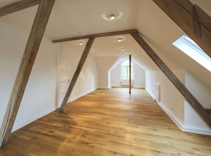 Bisher durchgeführte Maßnahmen: Kompletterneuerung von Elektrik (inkl. Hausanschluss), Heizungs- sowie Wasser- und Abwasserleitungen Austausch und Sanierung sämtlicher Bäder; flexible Leitungsführung für spätere Umnutzung Erneuerung aller Fenster gemäß Denkmalschutz sowie Aufarbeitung der historischen Türen Restaurierung von Fassade, Sandstein und Skulpturen an Haupt- und Kutscherhaus Neue Dachdeckung und Dämmung am Kutscherhaus, inkl. Ausbau mit Bad, Treppe, Fußbodenheizung und großzügigen Fensterfronten Aufarbeitung historischer Bodenbeläge, Freilegung von Wandmalereien Pflasterung des Hofs, neue Asphaltierung und Abdichtung des Kellerbereichs Neubau von Carport, Wendefläche mit Rasengitter und Ladesäulen für E-Fahrzeuge Installation von Klimaanlagen, Glasfaseranschluss, Regenrinnen mit Laubfang Baurechtliche Legalisierung der gewerblichen Nutzung
