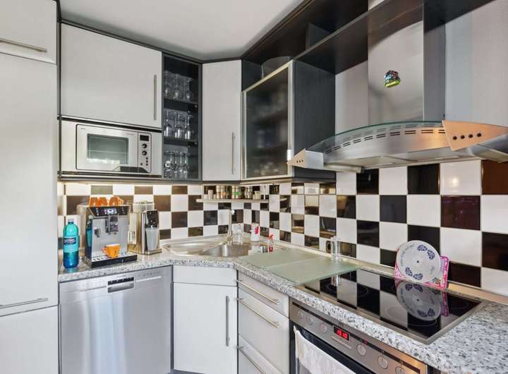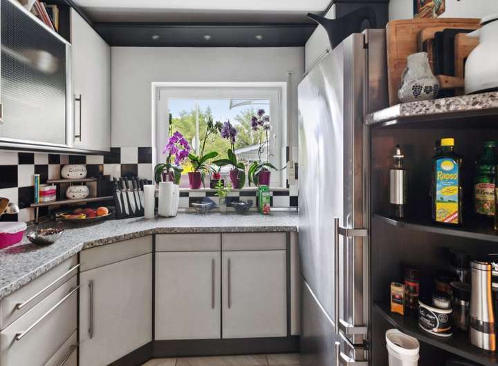 •	Die Küche ist mit einer zeitlosen Einbauküche ausgestattet – funktional und stilvoll zugleich.